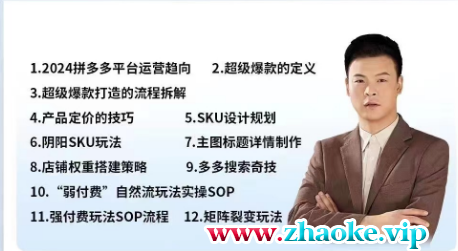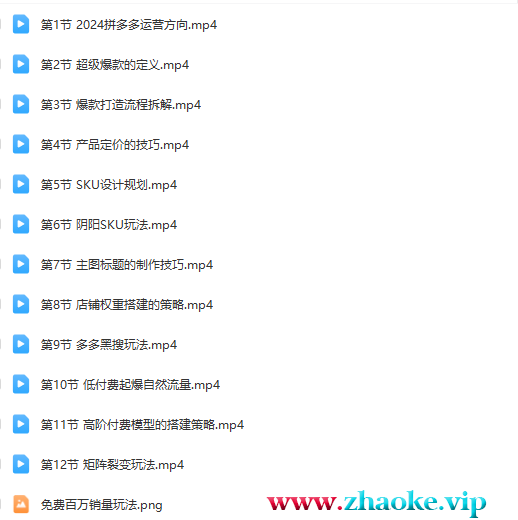 课程简介:老陶 2024多多运营必听的12节课全程干货,玩法实操课程目录:
