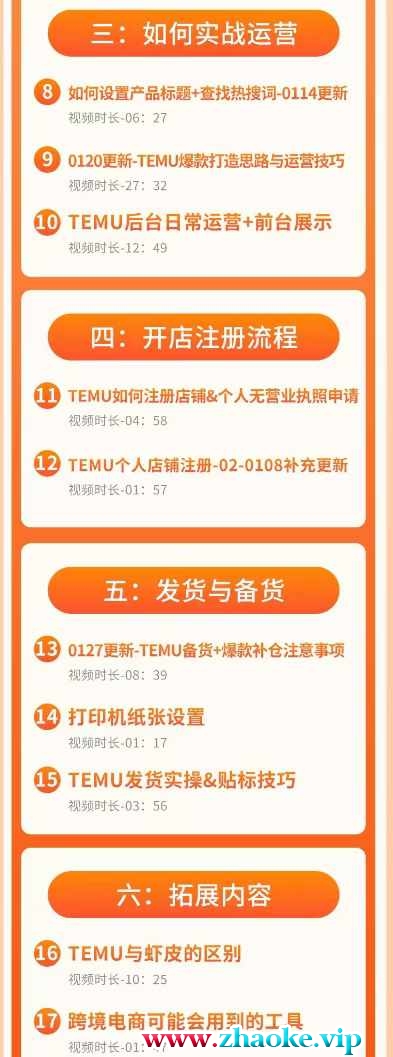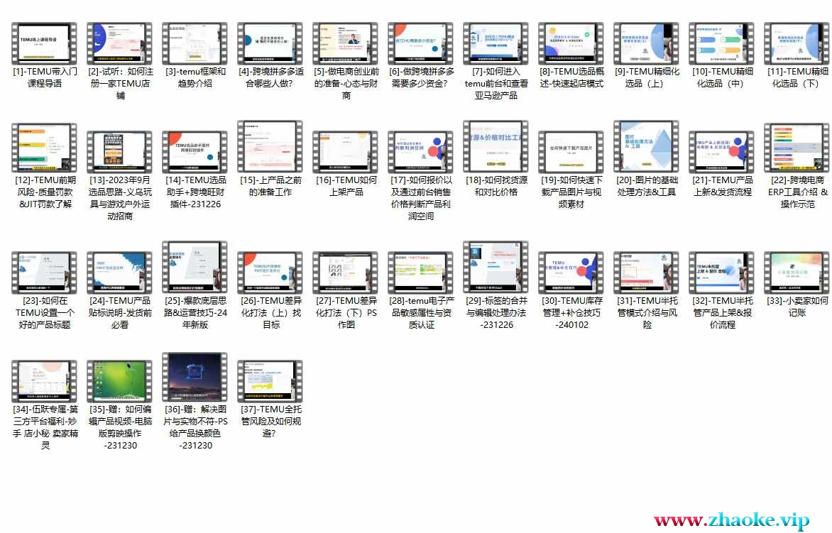 课程简介:伍跃-跨境拼多多TEMU实操与选品2024年9月更新(价值5980元)出海赚美金!!!课程目录: