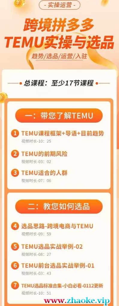 课程简介:伍跃-跨境拼多多TEMU实操与选品2024年9月更新(价值5980元)
