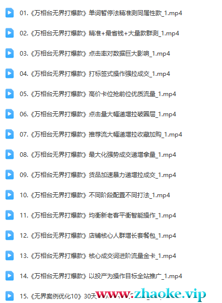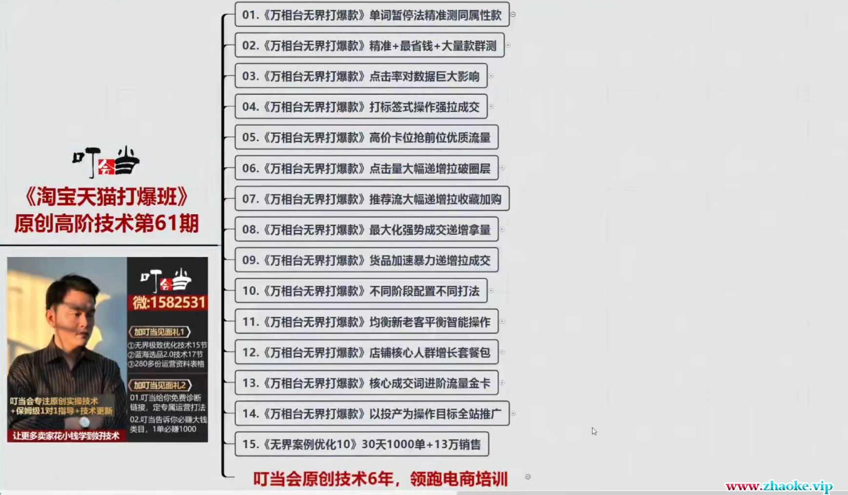 课程简介:叮当会-淘宝61期万相台无界《无界打爆款》实战篇!!!卡位抢流,递增破圈,打造店铺爆款秘籍视频截图:课程目录: