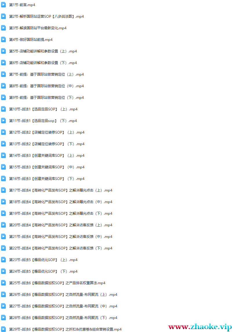 课程简介:鸡公-国际站运营SOP视频课2024年(价值2980元)阿里国际站|国际站运营SOP一套快速拿到结果的运营流程体系课程目录:
