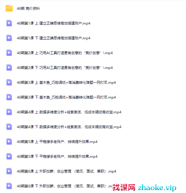 课程简介:厚昌赵阳-竞价培训第46期2025年3月(价值3688元)