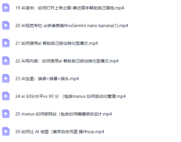 课程简介:#1月23日更新26 如何让 AI 做图(美学杂志风图 操作sop让AI成为你的24小时市场助理,从竞品分析到内容生产全流程提效3-10倍课程目录: