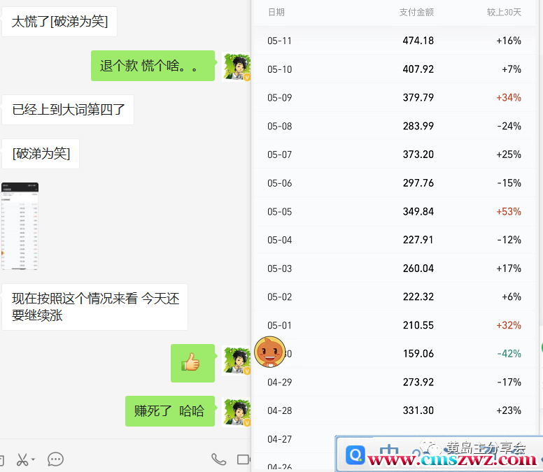 如图,可以看下,真的是小白一枚,连客户退款都慌得一笔,因为没被客户退过款,真的是第一次,别看他每天三四百收益,但真的没接触过退款。其实,做项目就是这样,就得不断的总结经验,这样下次在遇到了就可以迎刃而解。
