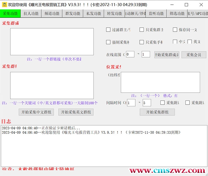采集+拉人+加群+群发+私发+转发+炒群+监听+筛号+频道订阅+修改账号信息+账号登录等功能