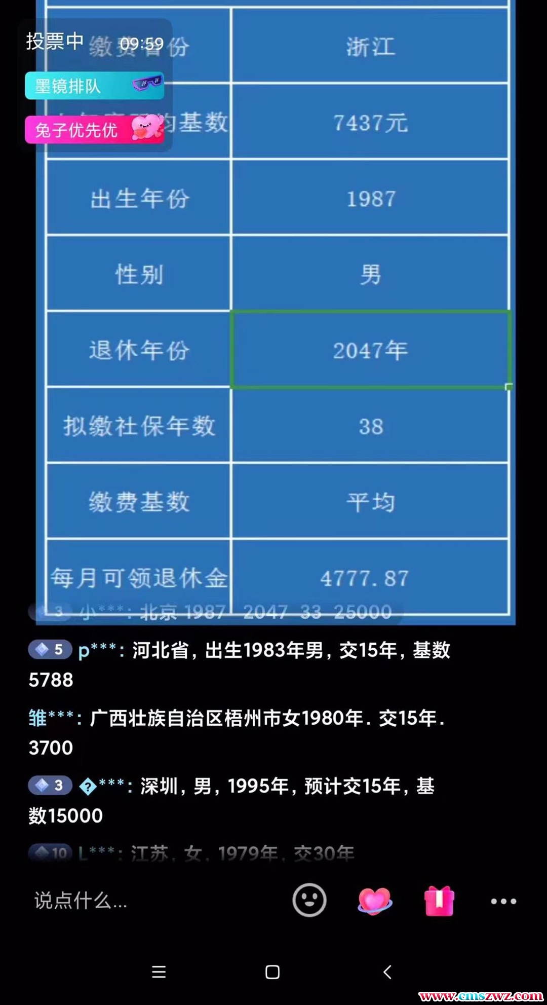 抖音直播间预测退休养老金领取金额。