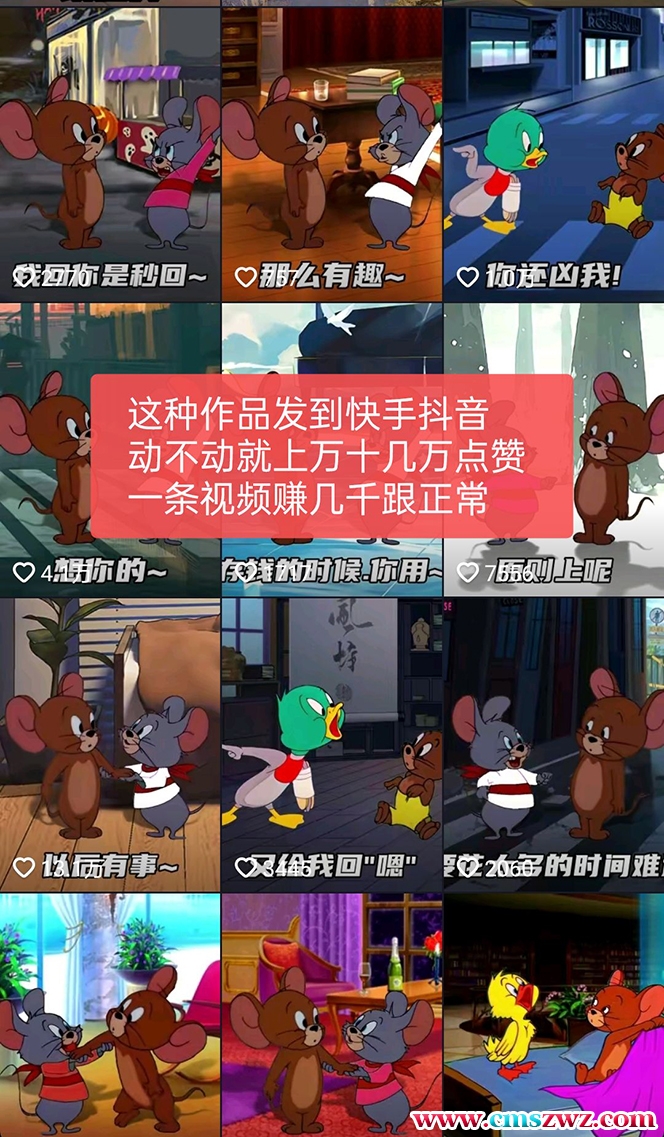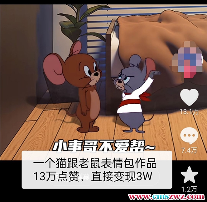 猫和老鼠绿幕抠图表情包的制作特别简单,5分钟就能做好,最核心的东西是绿幕素材,得用电脑一帧一帧的抠,抠这些素材我学了一周时间,现在全部整理好了,大家可以拿去直接用,而且这种视频做好了发到快手抖音,播放量特别高,点赞动不动就上万甚至几万,变现的话可以让粉丝到小程序取图赚广告费,也可以引流私域,做自己的项目。