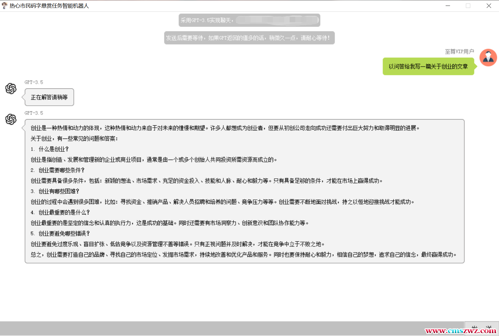 利用chatgpt3.5接口写的智能AI写稿脚本,脚本可实现按照你的要求去写出你需要的文章内容
