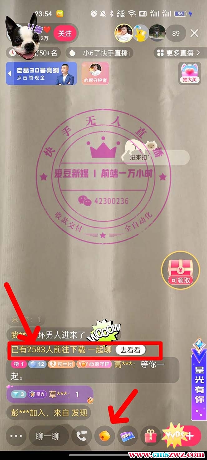 我们 0 粉免费给你开通“磁力聚星”小铃铛后(这个本来是需要“万粉”才能开通,我们有合作,可以 0 粉开通),用我们教的“无人直播”相关方法进行无人直播。