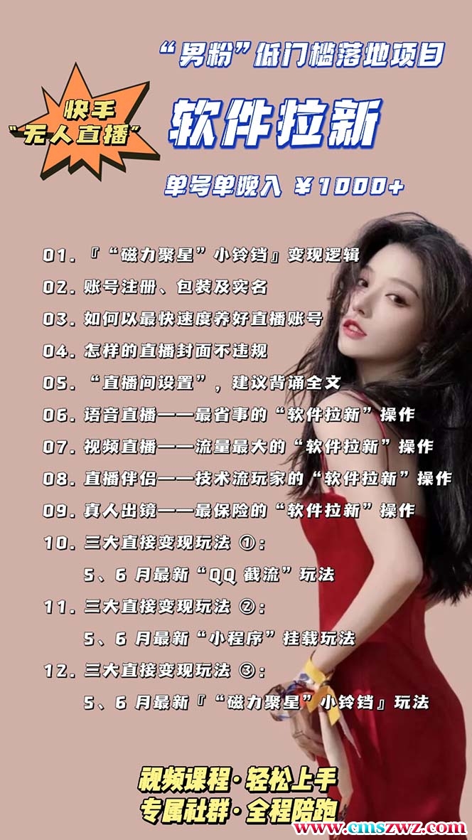 所以这种模式(快手官方“磁力聚星”小铃铛 + 无人直播)流量解决了,并且非常持久,只看你自己愿不愿意每晚花两个小时无脑开播而已。