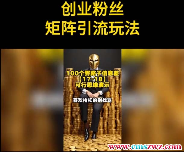 所以今天给大家拆解创业粉的引流玩法,看完之后,如果你有能力的话,你也可以做创业社群,做知识付费。