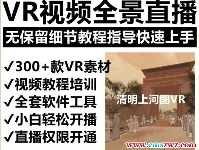抖音最火的VR全景视频直播项目,2023最新项目清明上河图直播间搭建(素材+教程+直播权限开通)VR视频全景直播,无保留细节教程指导快速上手300+款VR素材视频教程培训全套软件工具小白轻松开播直播权限开通