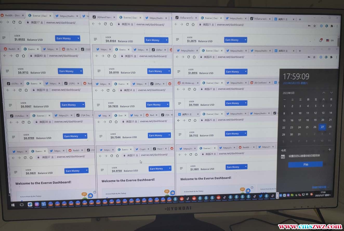单窗口0.2-0.5美元左右(看人工投入),这里以平均数值0.25做计算。一台电脑50窗口一个月的总计产出:50x0.25x30x7=2625元