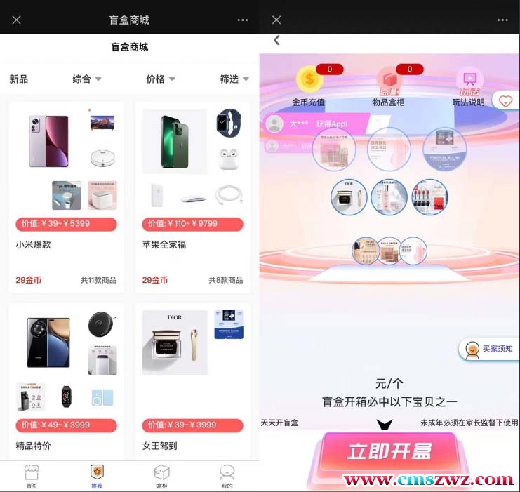 相比以前的版本新增了新人盲盒新增了首页弹窗修复代理推广简单美化UI包邮件数设置h5用的易支付可打包app新增小程序端,小程序用的官方支付 使用起来毫无bug