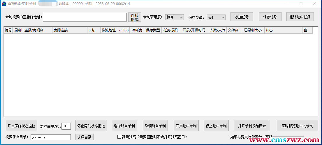 这是对直播平台的直播视频进行实时录制的软件,可以监控直播间是否开播,开播后可自动进行录制,自动去平台水印,且可以选择保证的清晰度(如蓝光、超清等)和保存的视频类型(如mp4\flv\ts等)。目前支持