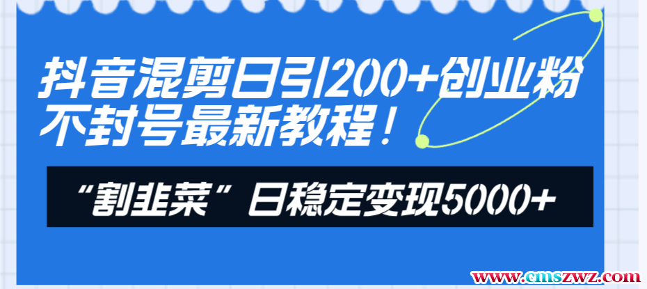 (8349期)抖音混剪日引200+创业粉不封号最新教程!“割韭菜”日稳定变现5000+!
