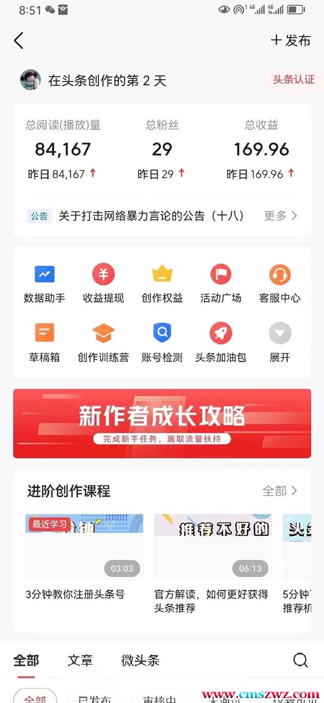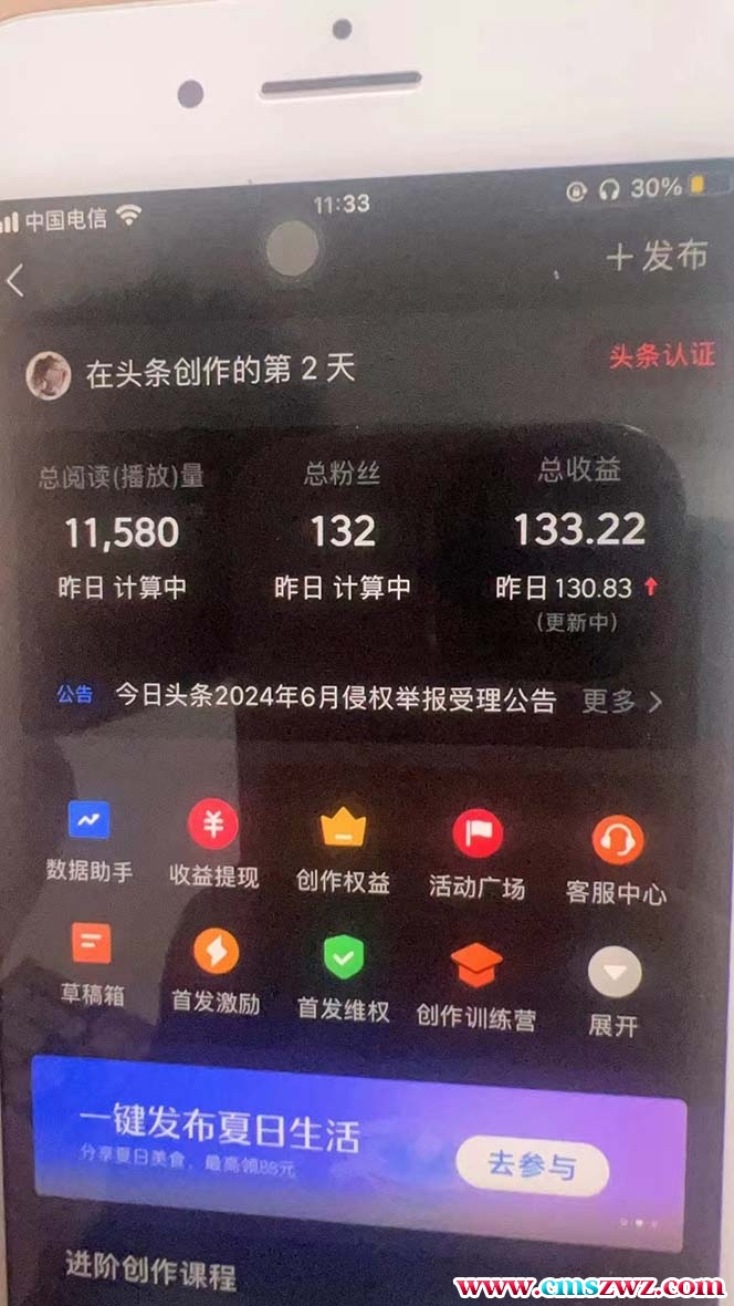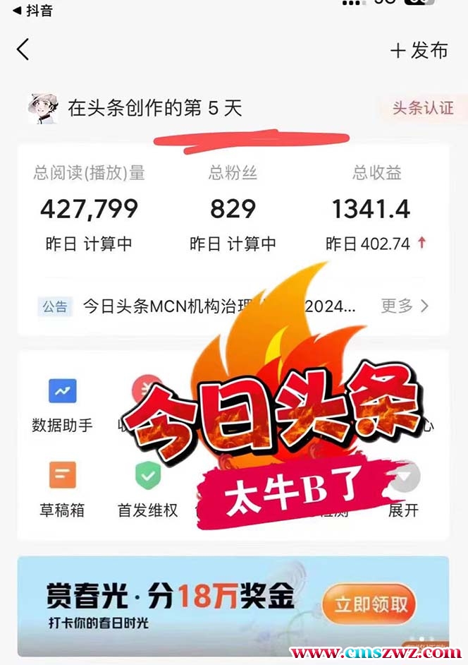 | 项目介绍: 说起今日头条,其实是个老项目了,但是自从这两年AI走进我们生活中,头条的又一种暴力变现玩法被大家发掘了出来。简单来说就是通过用AI软件,将其他平台的文案或者视频转换成原创文案,并发布到今日头条上,有播放量就有收益。项目门槛低,没有粉丝要求,新号都可以直接开干,并且只需要一部手机即可,最重要的是收益非常可观。我们实测的很多账号在发布文章的第二天,收益都能超过三位数了。 项目优势: 1.账号不需要粉丝,不需要剪辑,不需要经验。 2.AI一键生成爆款文案,不需要自己去写。 3.矩阵变现,可以多号操作,收益可观。 4.满1元可提现,每周都可提