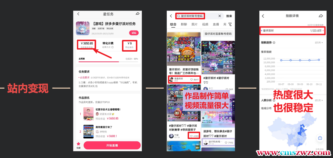 | 今天给大家带来的项目是《 蛋仔派对玩法.学会日入三千.磁力巨星跟游戏发行人都能做》。2024年初,《蛋仔派对》受到年轻人热捧,常常在App Store游戏免费榜霸榜。“10个00后,9个在玩《蛋仔派对》。蛋仔派对的流量方面一直很高,也很稳定。所以,这个项目非常推荐大家去做!主要是操作非常简单,你会截图可以做! 课程目录: 00 项目介绍 01 项目原理 02 平台选择 03 账号设置 04 如何变现 05 作品制作