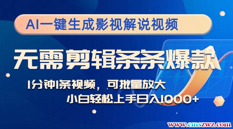 (12890期)AI一键生成影视解说视频,无需剪辑1分钟1条,条条爆款,多平台变现日入...