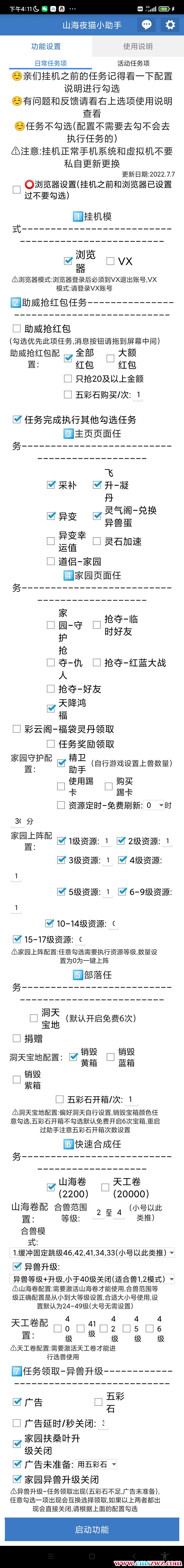 3.山海夺宝(抢夺,奖励领取,自动上兽)所有功能可单开,可全开,功能齐全。