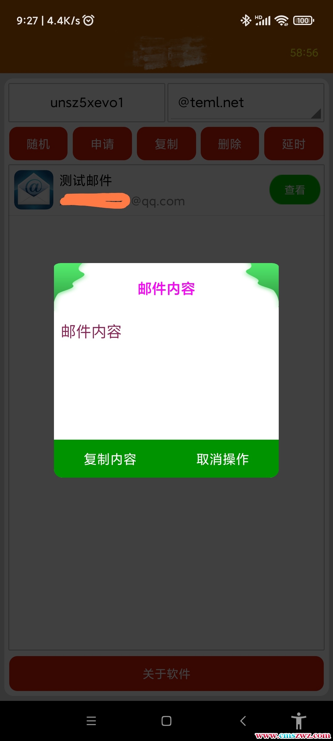 许多朋友在临时注册论坛或玩游戏时,都会遇到需要邮箱验证的情况,如果想多次注册就需要多个邮箱,而临时邮箱可以快速解决邮箱注册的问题,轻轻一点就有新的邮箱账号产生。所有邮箱都是一次性的,当临时邮箱被删除后,沒人能读取你的邮件。如果收到的邮件无法打开,则该邮件已被注销,请重新申请此邮箱才能打开邮件,每次申请的邮箱时效1小时。可以自己点击延时按钮对邮箱时效延长。1.输入一个邮箱名字,或者直接点击随机2.点
