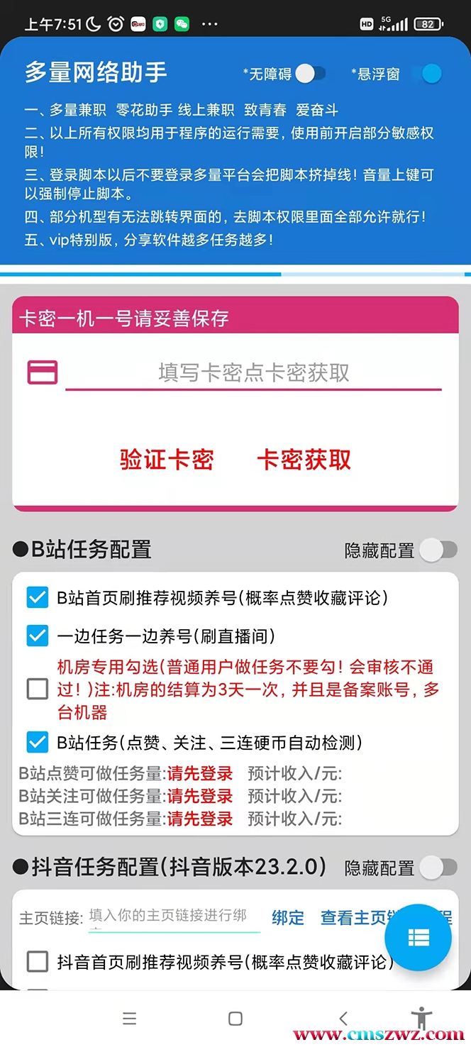 本软件脚本需要另外购买卡密,介意的请移步到不需要卡密的项目