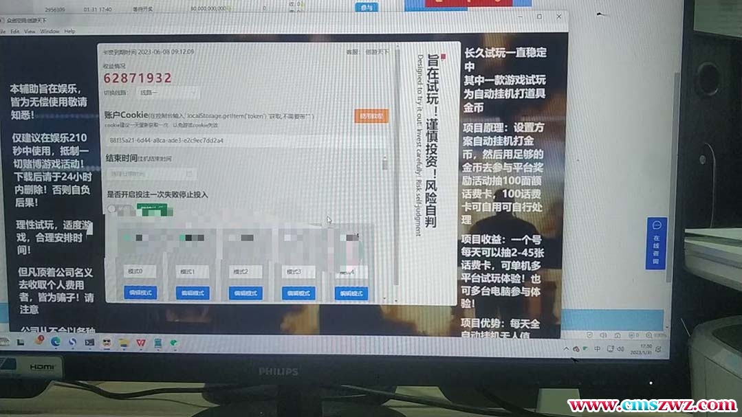 此脚本源头代理费4w 脚本外面三个月售价1288项目收益: 单号一天三张卡无压力 95回收一张项目原理:跟豆豆玩差不多,创游天下也是一个休闲益智的游戏平台,新人注册可以获得10万金豆,,然后可以拿脚本挂机使用金豆用来竞猜,竞猜金豆达到后可以用来兑换话费卡。设备需求:电脑(需要win10系统的电脑)如果你不知道【创游天下】是什么的,可以自行先去百度搜索【创游天下】先了解,有需要了再来!