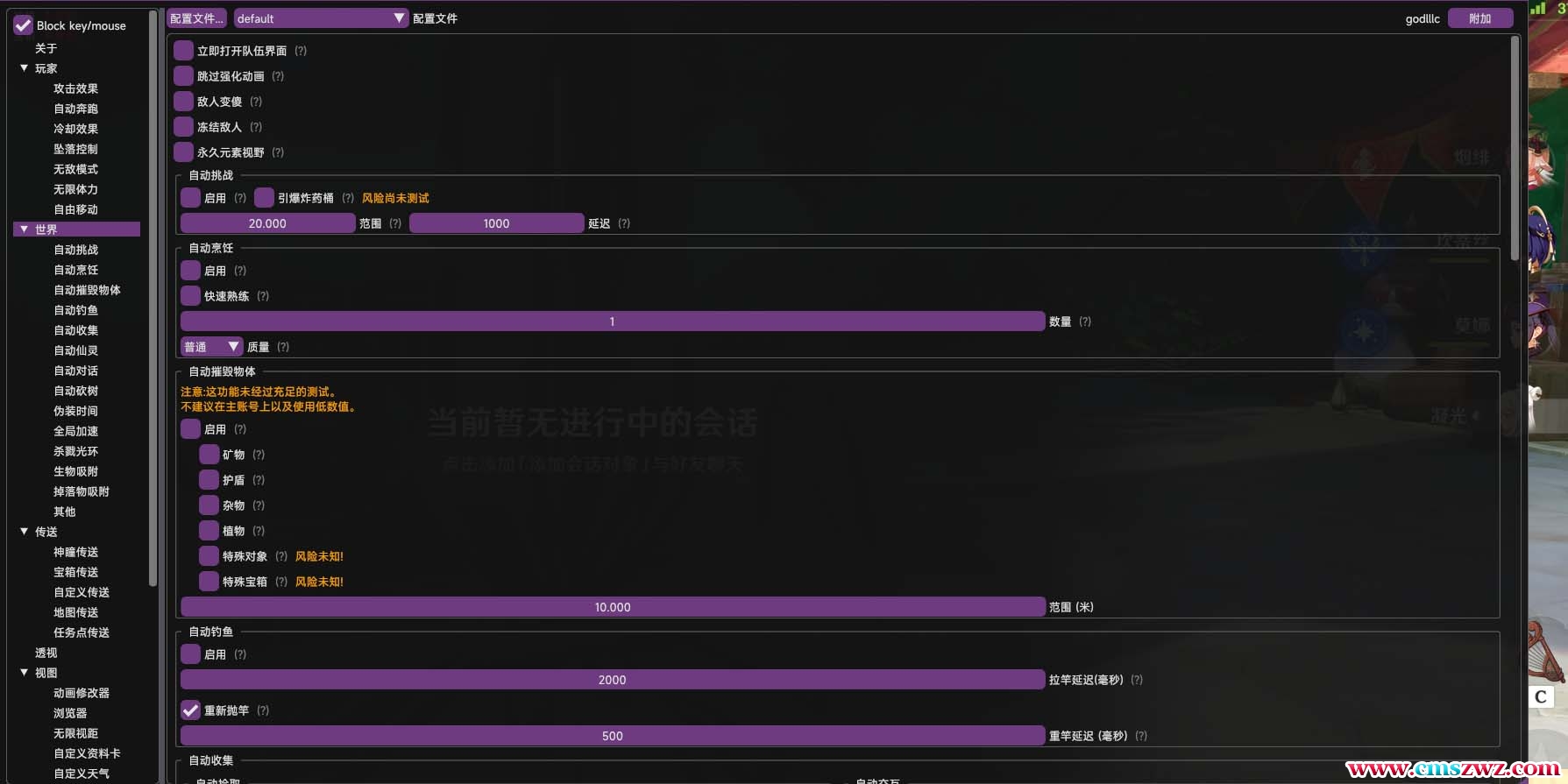 项目介绍:外面很多人需要原神代肝,目前市场是供不应求使用了这个脚本,可以极大提高刷材料,过任务的速度,原来5分钟的不可跳过剧情,使用之后只需要几秒,并且秒找宝箱,神童等任务点一键传送等等不在话下。也就是说可以几分钟完成一个单子。脚本功能:1.无敌模式.2.无限体力.3.范围内生物瞬杀.4.掉落物吸附.5.生物吸附.6.自动砍树,自动钓鱼,自动烹饪等.7.倍攻等等等等这里就不细说了。设备要求:电脑(