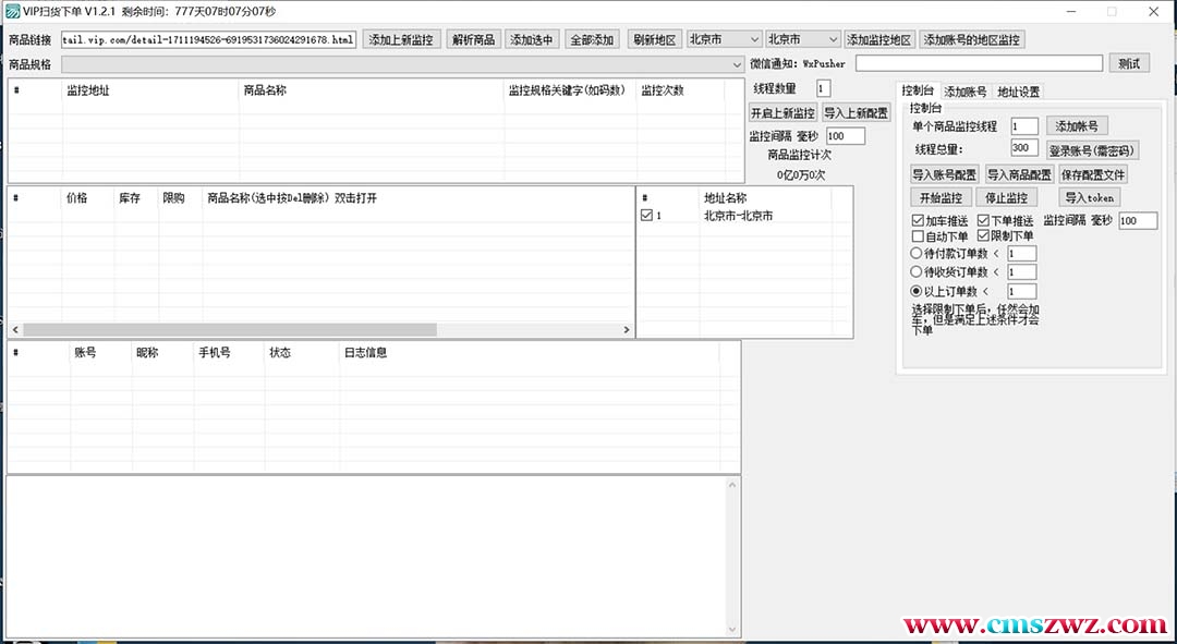 外面收费2580的唯品会脚本,脚本主要功能为自动监控唯品会的商品,全自动下单扫货,抢货搬砖必备神器脚本
