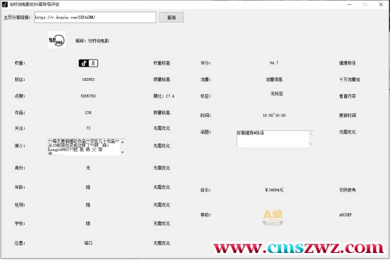 外面收费599一个月的查权重工具,说起抖音查权重,反正近期市面上非常热门的一个风口项目,做自媒体的懂的都懂,可以一键查询抖音账号的权重,在本平台内一次购买可以永久脚本,软件无二次收费。