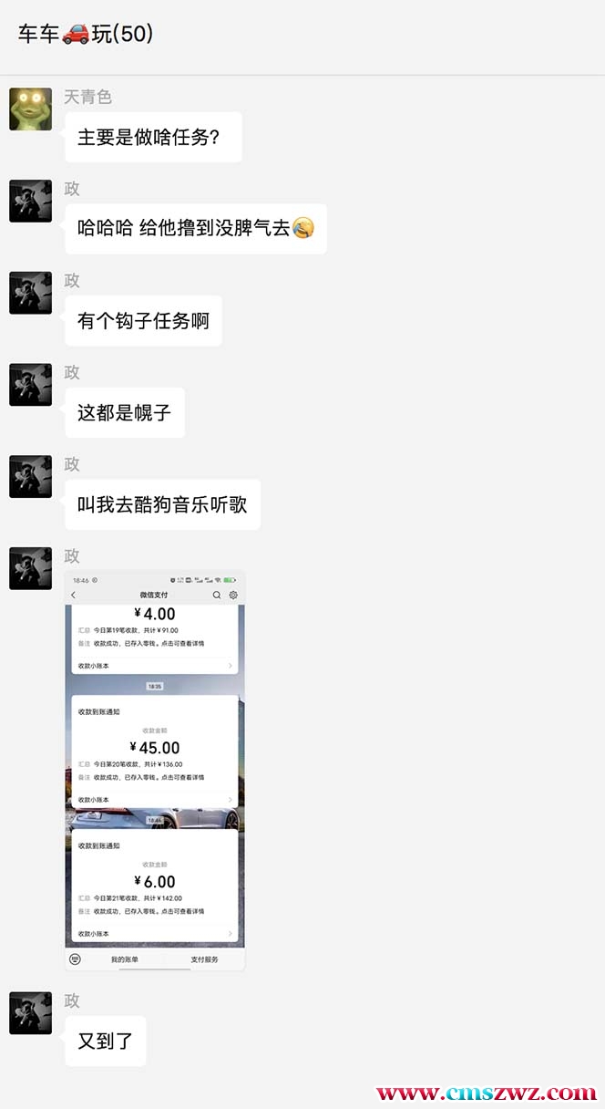 pz叫我们完成一些简单的任务就会给3-8元红包,可以一直撸,直到要求我们花钱的时候,我们拿来红包就可以走人了,不必继续听他们忽悠,切记不要垫付,咋们只进不出