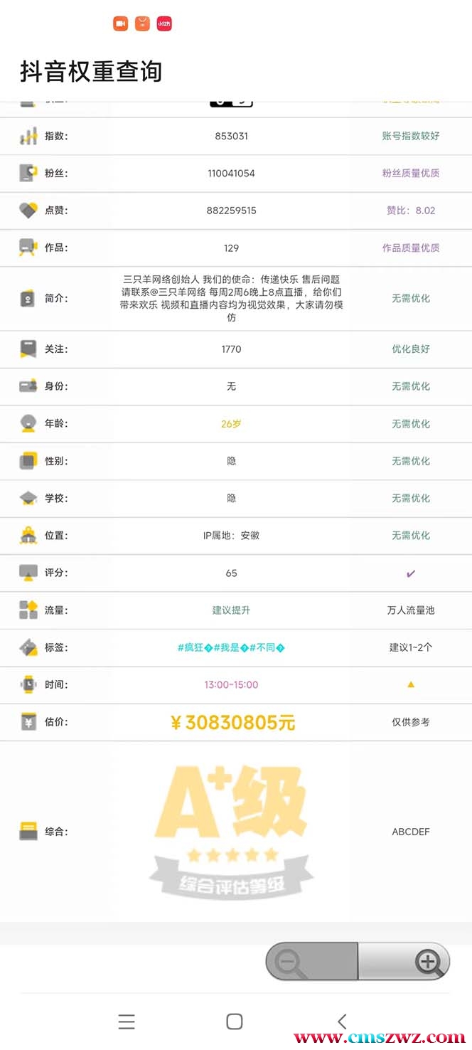 外面收费599一个月的查权重工具,说起抖音查权重,反正近期市面上非常热门的一个风口项目,做自媒体的懂的都懂,可以一键查询抖音账号的权重。