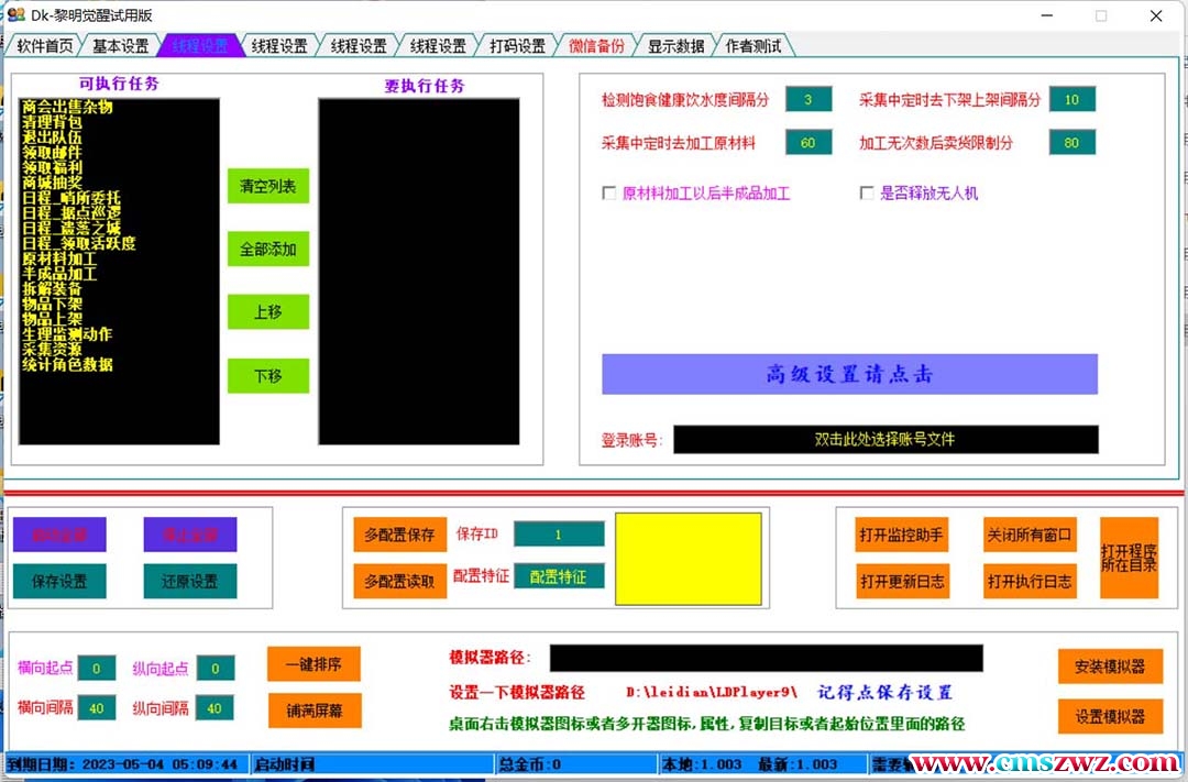 账号前期需要手动练号,升级达到30级才可以挂机采集、升级时间大概3小时左右,多号批量练级可以考虑用电脑模拟器多开,再用电脑模拟器的同步器功能,同步操作