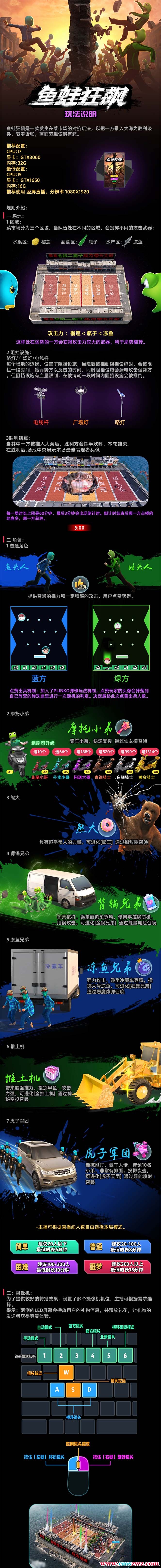 鱼蛙狂飙是一款发生在菜市场的对抗玩法,以把一方推入大海为胜利条件,节奏紧张,画面表现谐有趣。