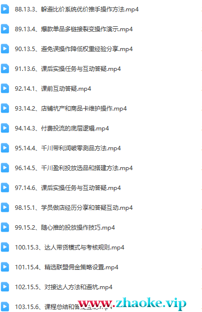 └──99.15.2、随心推的投放操作技巧.mp4 75.23M├──100.15.3、达人带货模式与考核规则.mp4 32.16M
