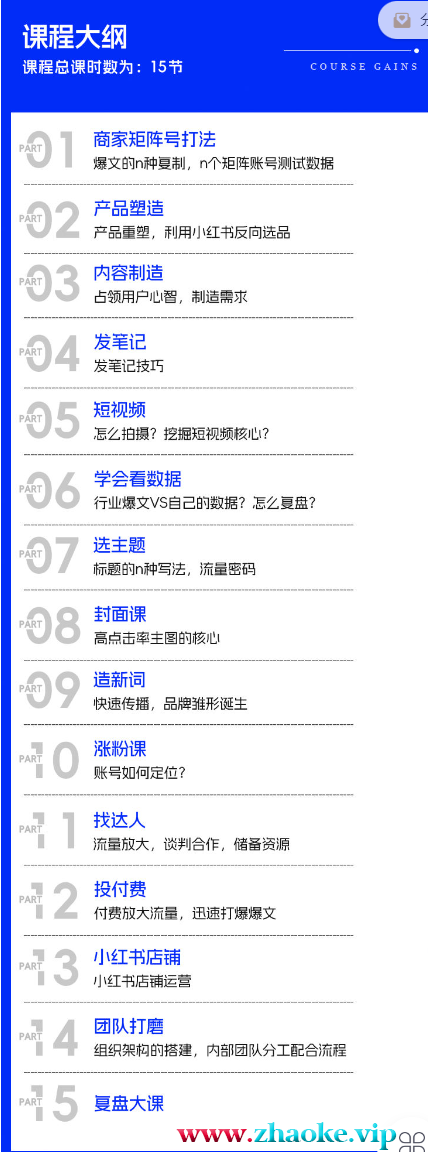 课程简介:课程目录:——/互联网/D自媒体/935、贾真-小红书打爆款实战课2024年4月(价值1999元)/├──001.【一】商家矩阵号打法.mp4 269.57M├──002.【二】产品塑造.m