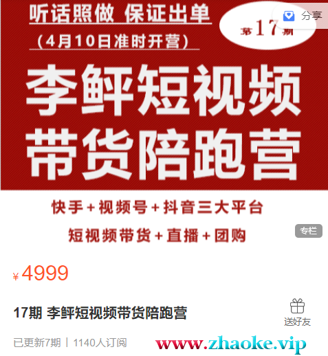 李鲆短视频带货陪跑营17期(价值4999元)