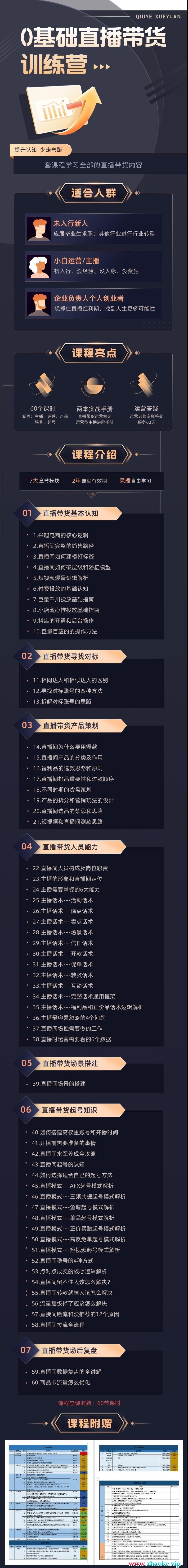 课程简介:0-1系统化学习直播流程、一套课程全面掌握直播带货知识点课程目录: