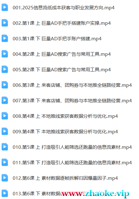 课程简介:抖音来客与本地推—线索获客集训营【含信息流27期】2025年1月22更新(价值3599元)#2025年1月22更新,最新27期信息流,厚昌出品,必属精品课程目录:等等