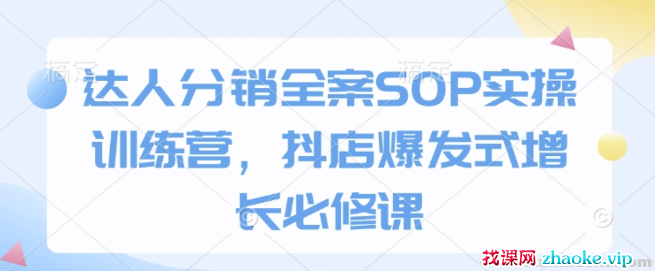 达人分销全案SOP实操训练营 抖店爆发式增长必修课
