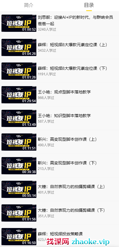 课程简介:25年最好的短视频ip课程!!!强烈推荐课程目录: