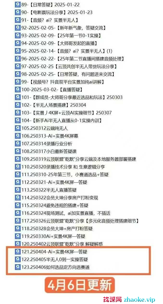 课程简介:云顶联盟-半无人直播抖音视频号2025年4月8日(价值2980)云顶无人直播4月8更新,同步钉钉最新:课程目录: