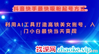 抖音快手最快吸粉起号方式 利用AI工具打造美女账号 入门小白最快当天变现