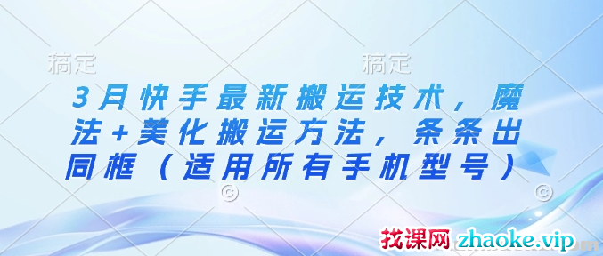 3月快手最新搬运技术 魔法+美化搬运方法 条条出同框(适用所有手机型号)