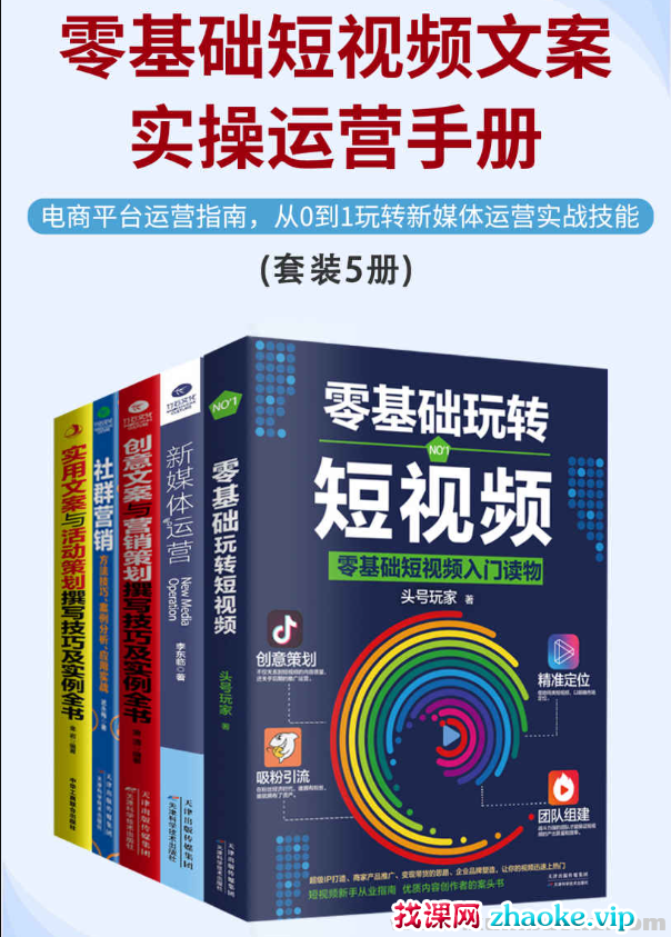 零基础短视频文案实操运营手册(全5册):零基础玩转短视频+新媒体运营+创意文案+实用文案+社群营销
