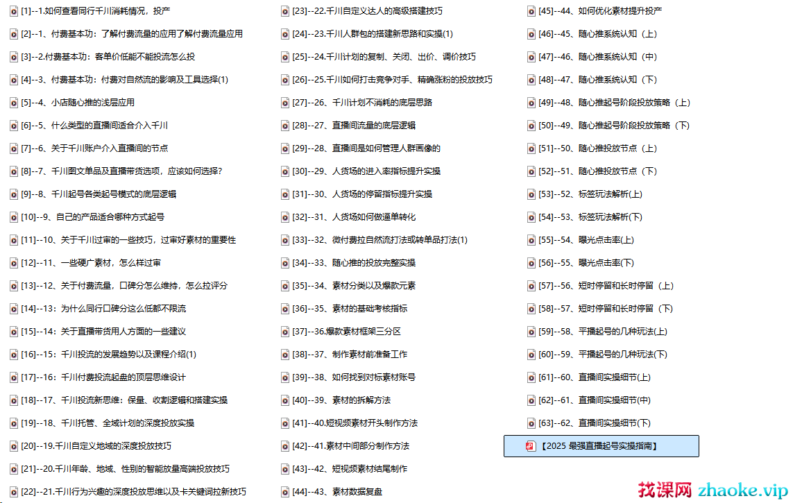 天诺老吴-2025自然流直播起号+千川付费实操线上课(62节)