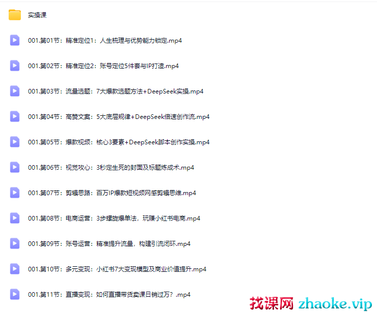 课程简介:2025全新升级AI版,打造个人IP,实现个人商业化,小红书鼻祖教你做号!!!课程目录:实操课目录: