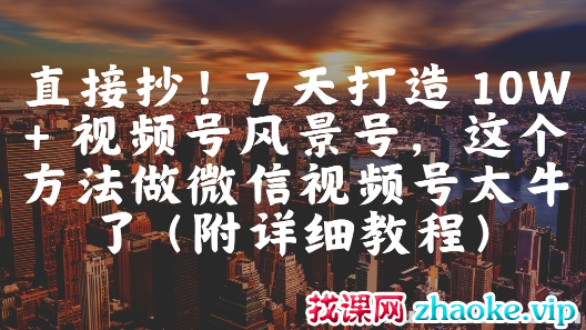 直接抄!7 天打造 10W + 视频号风景号 这个方法做微信视频号太牛了(附详细教程)