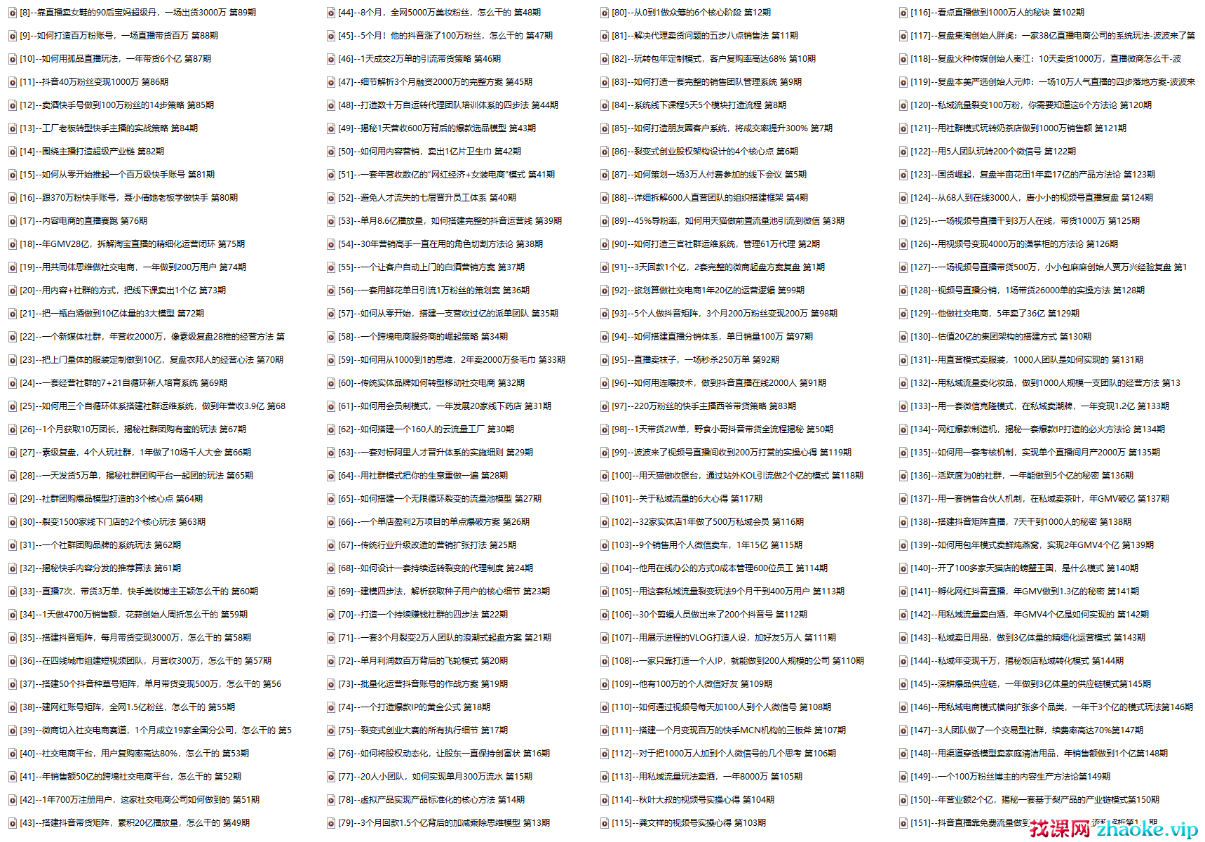 ├──[152]–4人团队月销500万,揭秘抖音直播卖录播课的变现模式第152期.mp3 27.47M