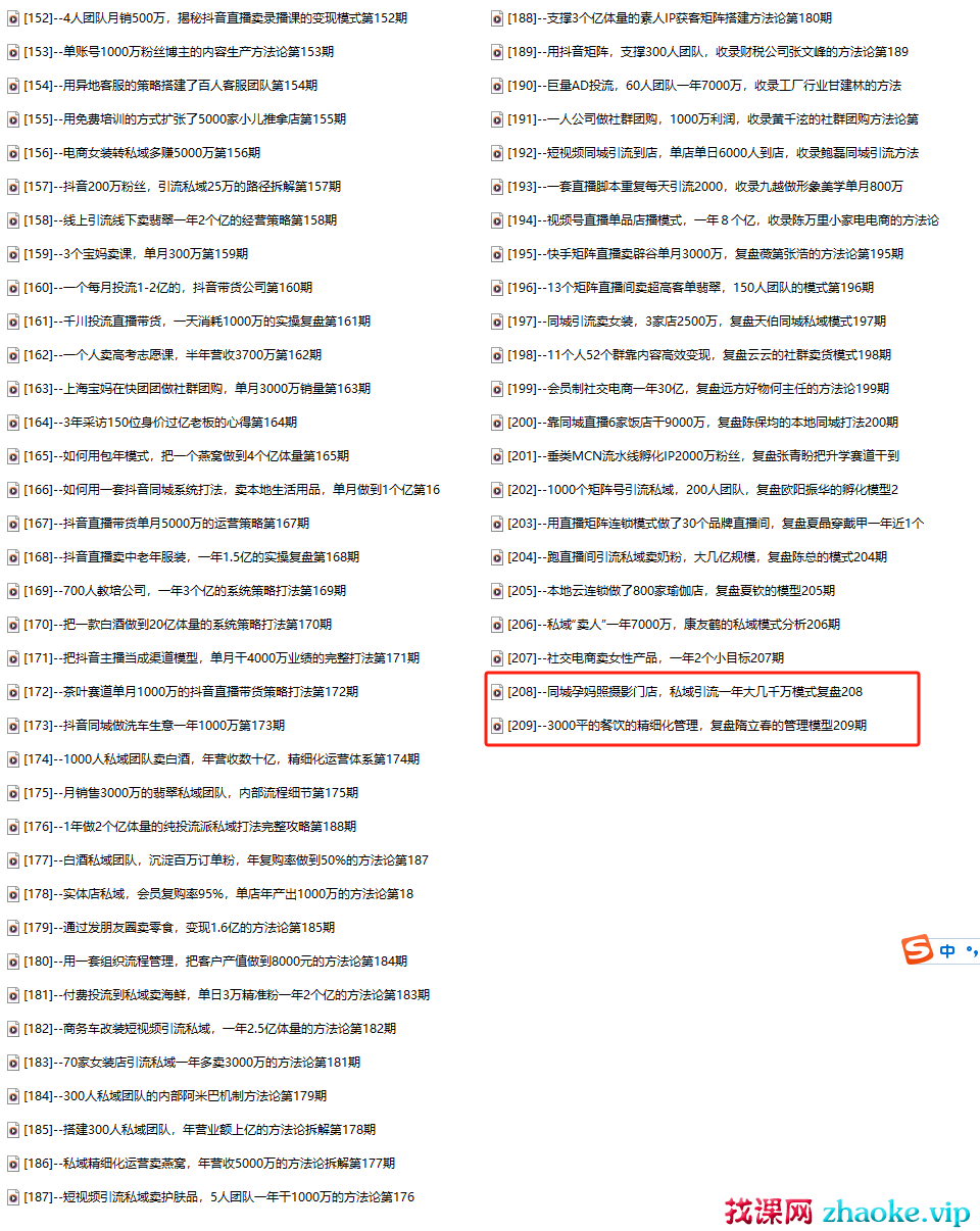 ├──[207]–社交电商卖女性产品,一年2个小目标207期.mp3 14.81M├──[208]–同城孕妈照摄影门店,私域引流一年大几千万模式复盘208.mp3